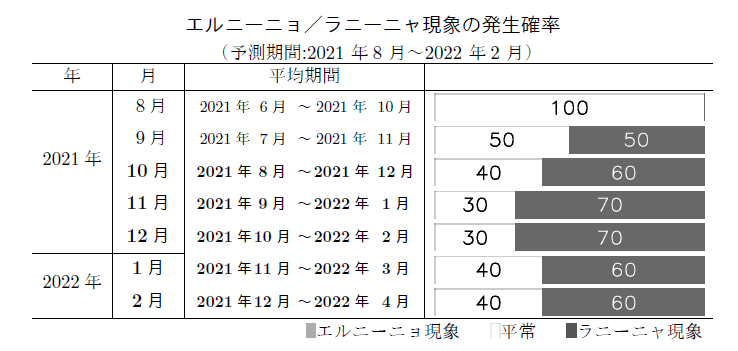 気象庁は先日「エルニーニョ監視速報」にて今秋から冬にかけ“ラニーニャ現象”が発生する可能性が高い事を発表しました。
