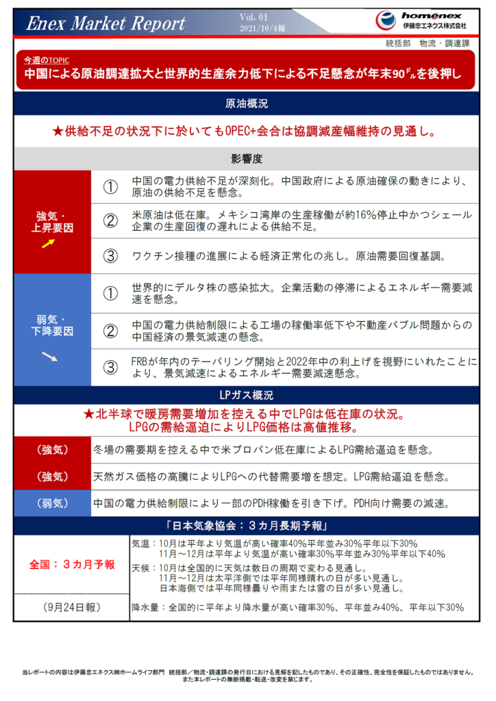 中国による原油調達拡大と世界的生産余力低下による不足懸念が年末90㌦を後押し