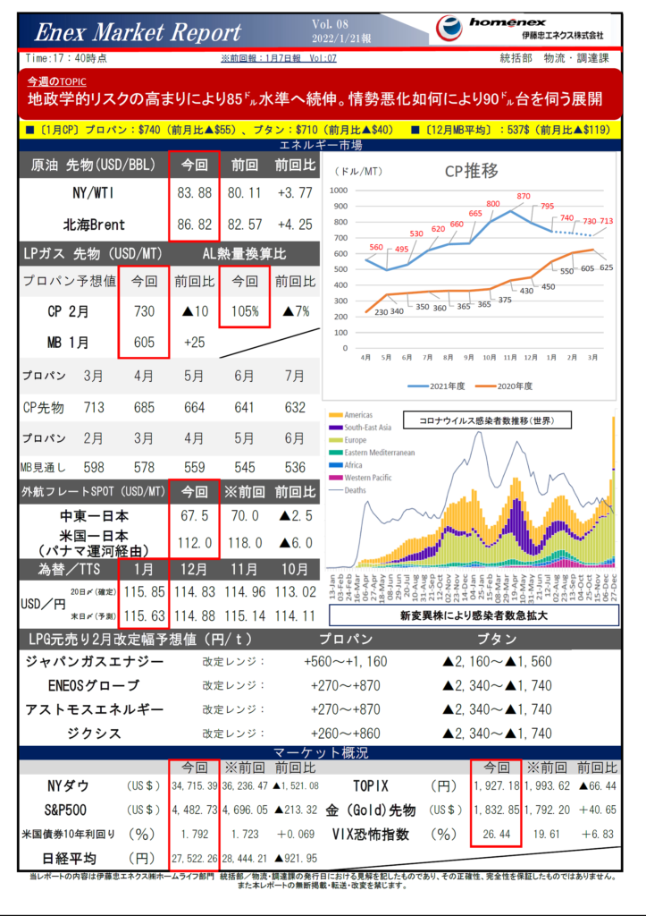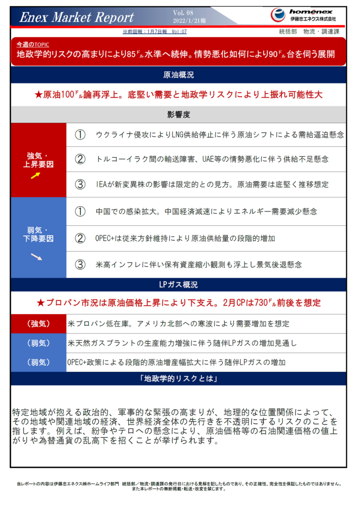 地政学的リスクの高まりにより85㌦水準へ続伸。情勢悪化如何により90㌦台を伺う展開