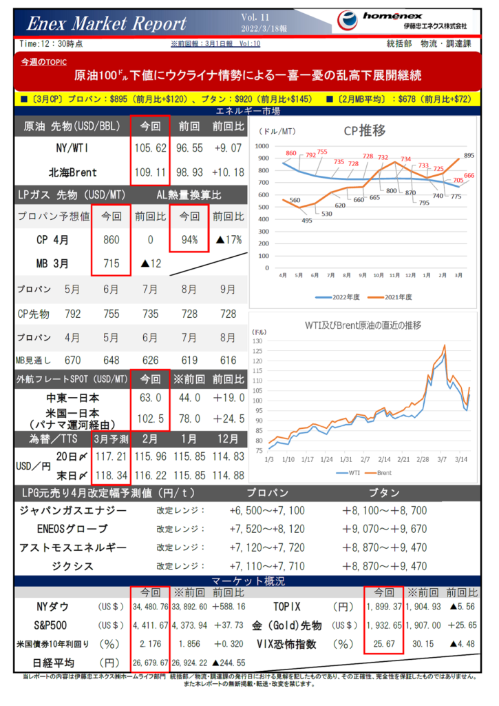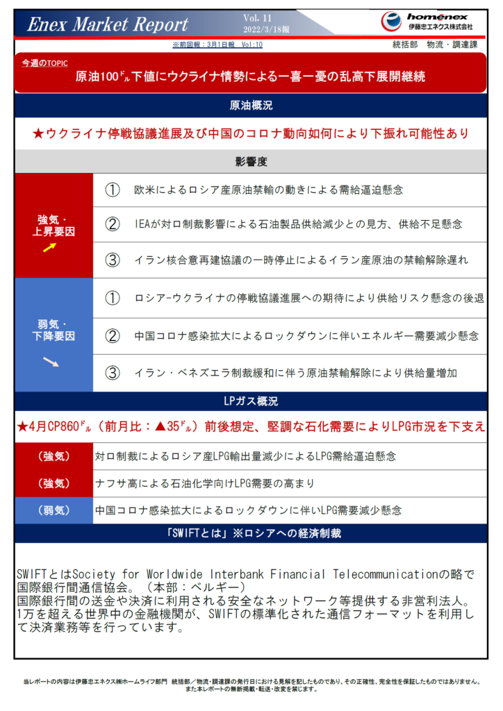 原油100㌦下値にウクライナ情勢による一喜一憂の乱高下展開継続