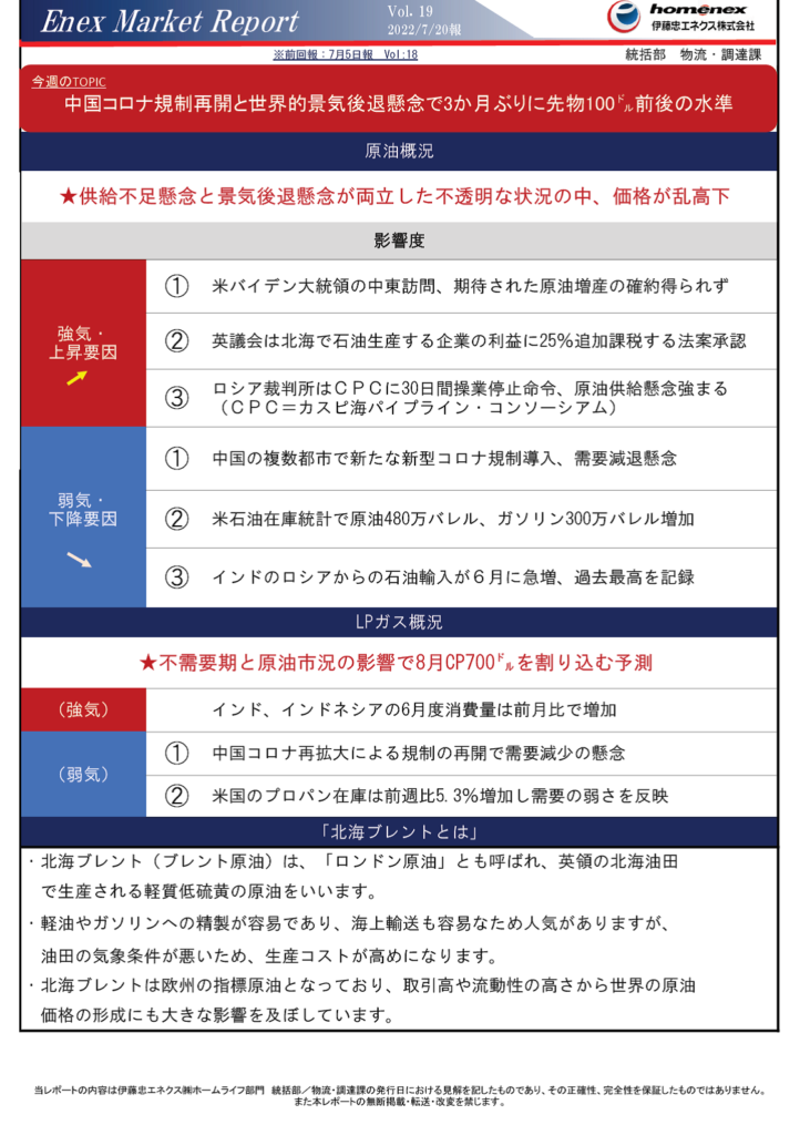 中国コロナ規制再開と世界的景気後退懸念で3か月ぶりに先物100㌦前後の水準