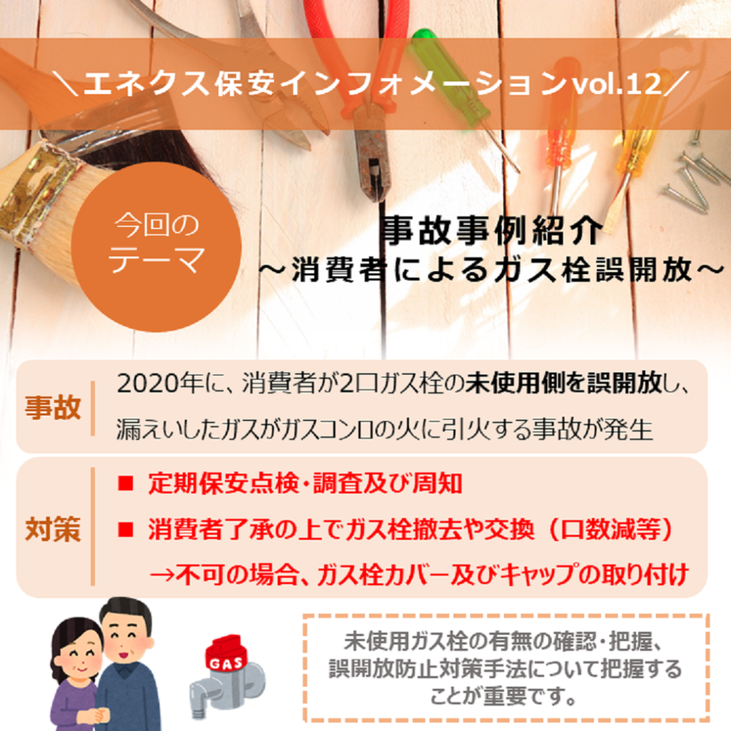 未使用ガス栓の有無の確認・把握を徹底し、誤開放防止対策を実施しましょう!