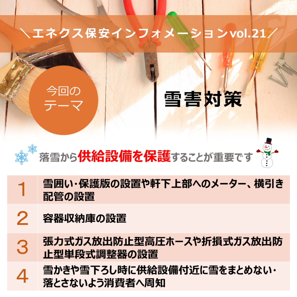 今回は、本格的に降・積雪の季節に入るにあたり、雪害対策について配信いたします。